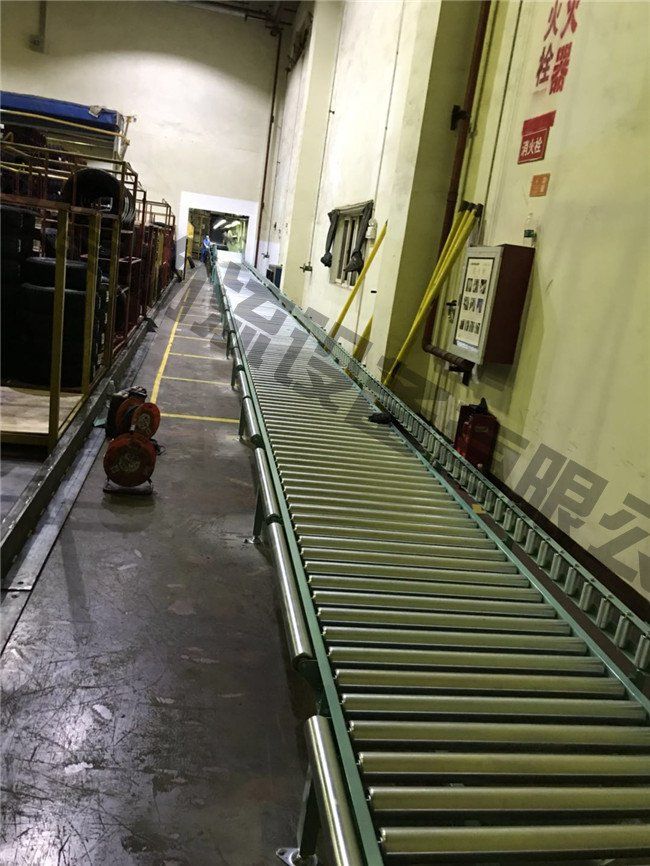 無動力滾筒輸送機 又稱輥道。有長輥道和短輥道兩種。長輥道的輥子表面形狀有圓柱形、圓錐形和曲面形幾種,以圓柱形長輥道應(yīng)用*廣。輥道的曲線段采用圓錐形輥子或雙排圓柱形輥子,可使物品轉(zhuǎn)彎。短輥道可以縮短輥子的間距,自重較輕。輥道一般稍下傾,當物品較重、線路較長時,為了推動物品時省力,斜度可取1~1.5%。如要使物品自滑,斜度可增大到2~3%。影響自滑斜度大小的因素很多,大多用實驗確定合適的角度。當線路長度小于10米、物品輕于 200千克時,可以布置成水平線路。自滑式輥道不易控制物品下滑速度,所以長度一般不大。輥道的寬度比物品寬度大100~150毫米。曲線段*小曲率半徑為輥道寬度的3~4倍。輥子間距為輸送物品長度的1/3~1/4,當物品輸送的平穩(wěn)性要求較高時。間距可取輸送物品長度的1/4~1/5。輥子直徑按載荷大小決定。