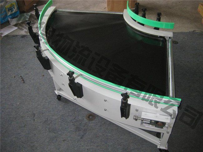皮帶輸送機(jī)主要由機(jī)架、輸送皮帶、皮帶輥筒、張緊裝置、傳動(dòng)裝置等組成。槽型皮帶機(jī)、平型皮帶機(jī)、爬坡皮帶機(jī)、轉(zhuǎn)彎皮帶機(jī)等多種形式,輸送帶上還可增設(shè)提升擋板、裙邊等附件,能滿足各種工藝要求。輸送機(jī)兩側(cè)配以工作臺(tái)、加裝燈架,可作為電子儀表裝配,食品包裝等皮帶機(jī)裝配線。